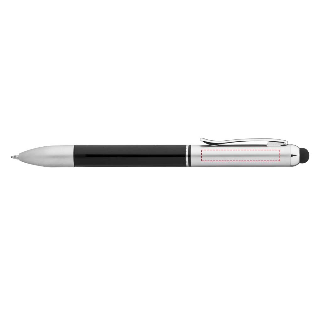 Stylus en meerkleurenbalpen met draaimechanisme. Inclusief extra zwarte en rode vulling.