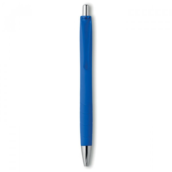 Balpen van ABS met zachte grip. Drukmechanisme. Blauwe inkt.