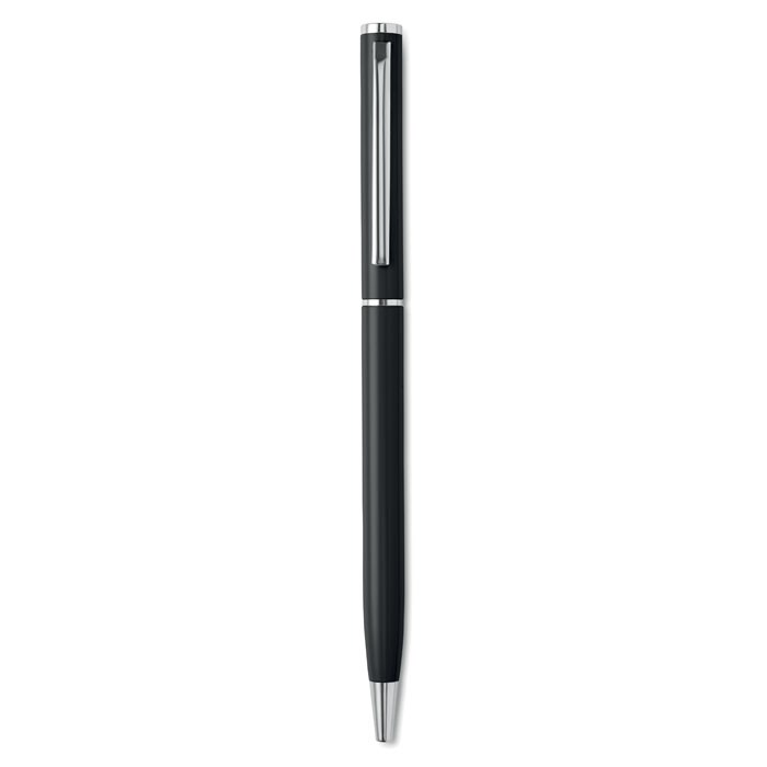 Gekleurd aluminium balpen met twistmechaniek en chroomkleurige details. Blauwe inkt.