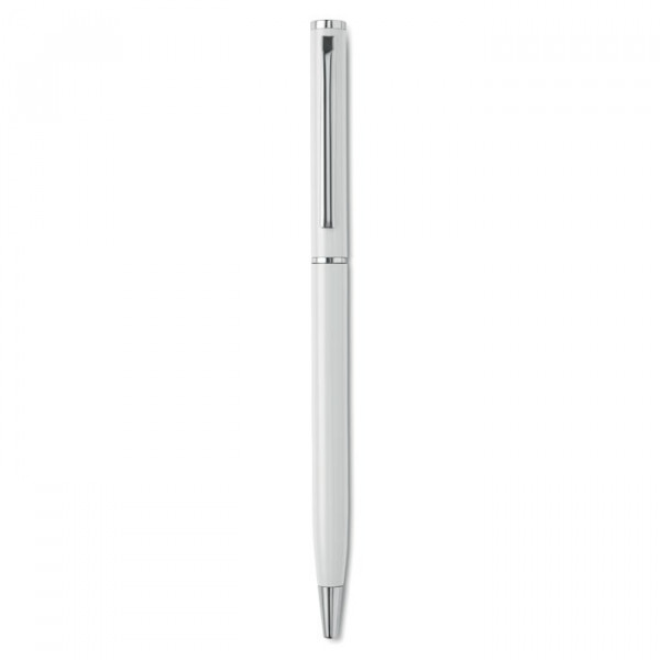 Gekleurd aluminium balpen met twistmechaniek en chroomkleurige details. Blauwe inkt.