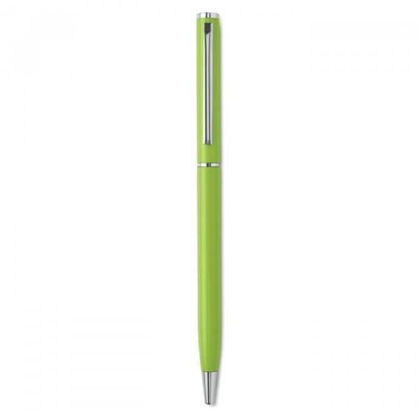 Gekleurd aluminium balpen met twistmechaniek en chroomkleurige details. Blauwe inkt.