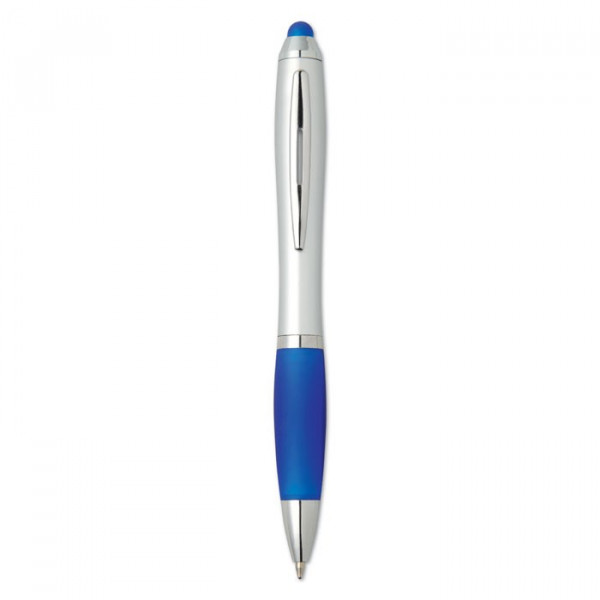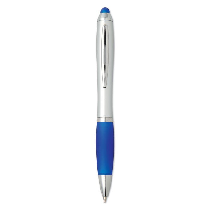 Kunststof balpen met zachte grip en bijpassende touch tip. Draaimechanisme en blauwe inkt.