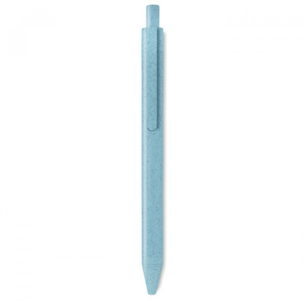 Balpen met drukmechanisme gemaakt van 50% tarwestro/ 50% ABS kunststof. Blauwe inkt.