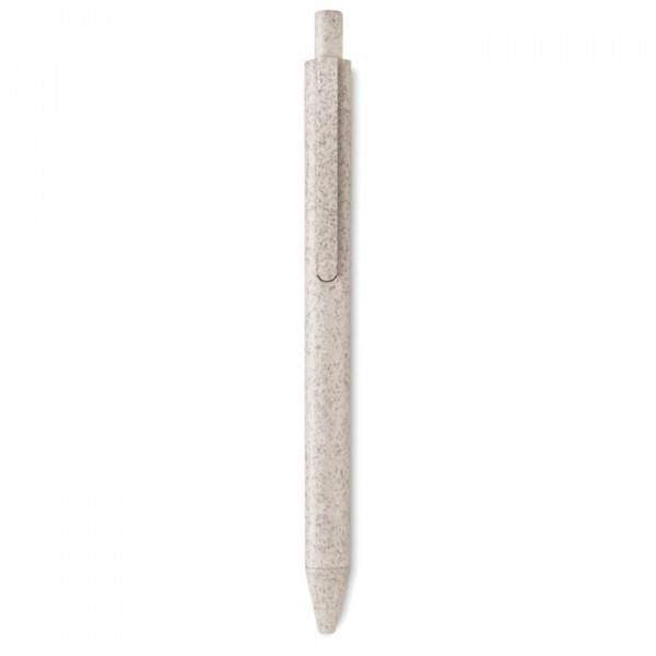 Balpen met drukmechanisme gemaakt van 50% tarwestro/ 50% ABS kunststof. Blauwe inkt.