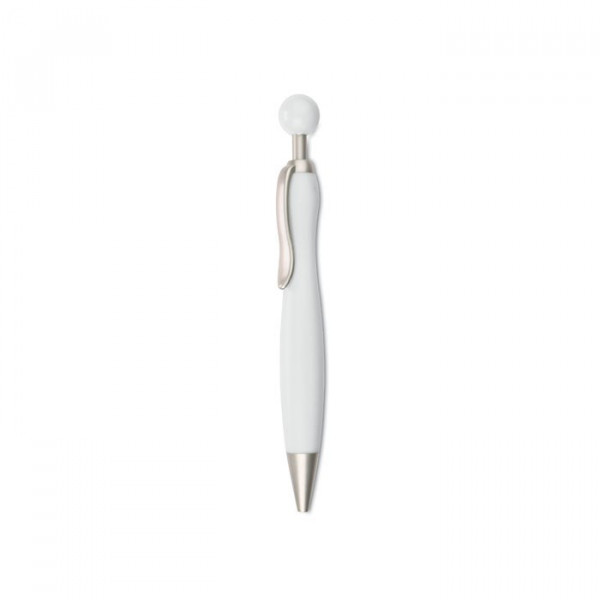Kunststof balpen met bolvormig drukmechanisme. Eindstuk en clip in mat zilver uitgevoerd. Zwarte inkt.