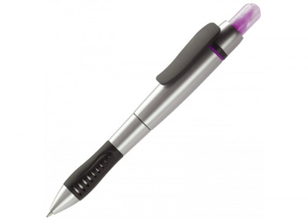 Balpen en markeerstift in zilver met zwarte onderdelen. Bedrukking middels tampondruk.