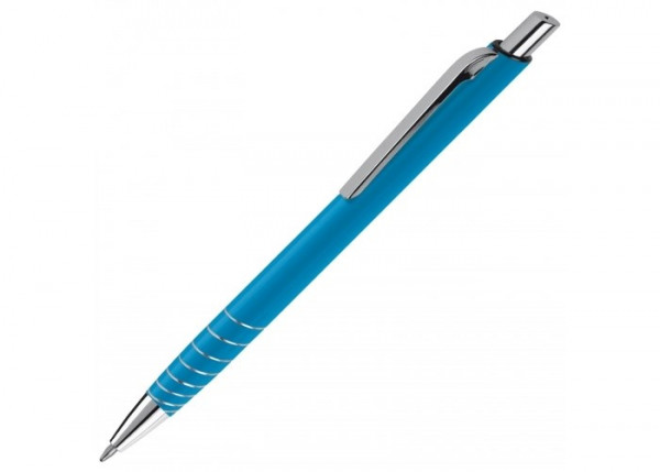 Toppoint aluminium balpen met metalen clip en drukmechanisme. Voorzien van gedraaide ringen voor een extra fraai accent. Blauwschrijvende vulling.