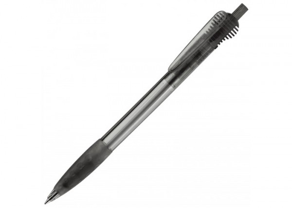 Toppoint balpen met ronde bolclip en rubberen grip. Met kunststof X20 vulling voor 2,5km schrijfplezier. Transparant.