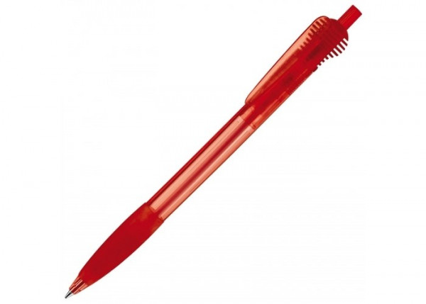 Toppoint balpen met ronde bolclip en rubberen grip. Met kunststof X20 vulling voor 2,5km schrijfplezier. Transparant.