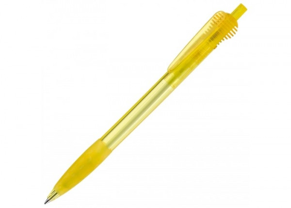 Toppoint balpen met ronde bolclip en rubberen grip. Met kunststof X20 vulling voor 2,5km schrijfplezier. Transparant.