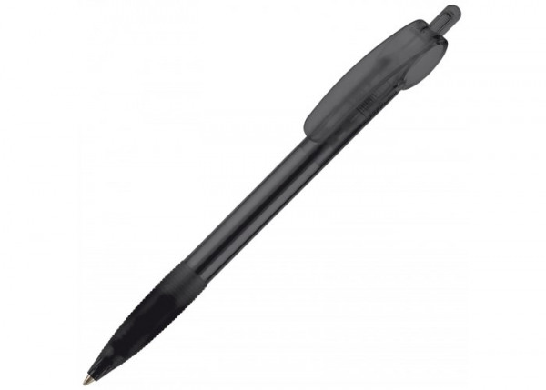 TopPoint balpen met kunststof boogclip en rubberen grip. Met kunststof X20 vulling. Transparant. Blauwschrijvend. Made in Germany.
