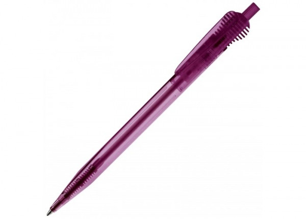 Toppoint balpen met ronde bolclip. Met kunststof X20 vulling voor 2,5km schrijfplezier. Transparant.
