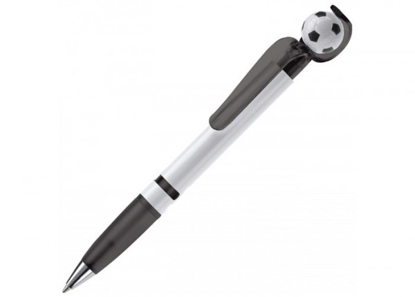 Plastic balpen met voetbal en transparante onderdelen. Voetbal kan ronddraaien. Blauwschrijvend. mehr