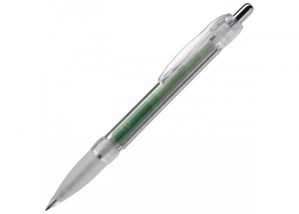 Transparante balpen met rubberen grip. Met full-colour banner bedrukking aan twee zijden. Blauwschrijvende X20 vulling. Bedrukking op de houder of clip mogelijk.