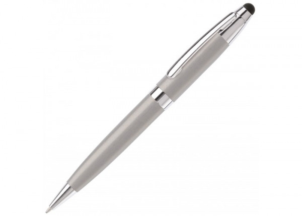 Metalen balpen met twist mechanisme. De balpen bevat een stylus op de bovenkant van de pen. De pen bevat een zwartschrijvende Jumbo vulling.