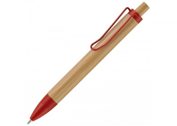 Bamboo balpen met gekleurde metalen clip en kunststof delen.