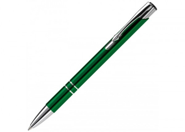 Elegante aluminium balpen. Met twee ringen in het lichaam van de pen als opmerkelijk detail. Blauwschrijvende plastic vulling.
