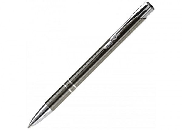 Elegante aluminium balpen. Met twee ringen in het lichaam van de pen als opmerkelijk detail. Blauwschrijvende plastic vulling.