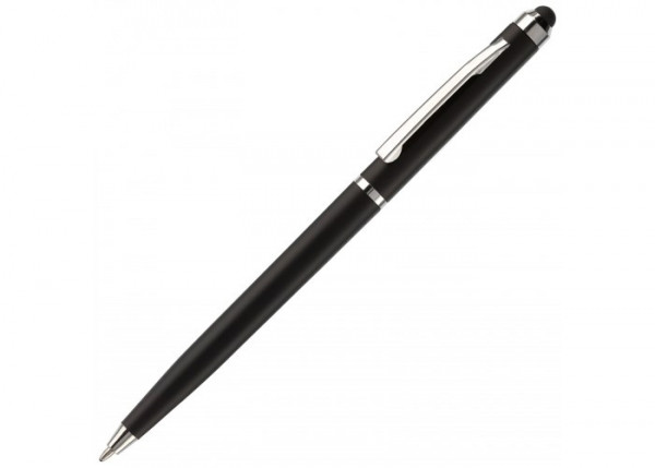 Slanke kunststof touchscreen pen met draaimechanisme. Blauwschrijvend.