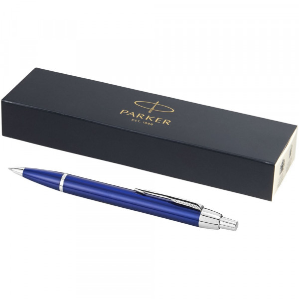 Parker IM - modern design en zeven tijdloze afwerkingen in een geslaagde combinatie van klassieke en eigentijdse stijl. De beste materialen, gekoppeld aan een ultramodern productieproces, staan garant voor de wereldwijd vermaarde Parker kwaliteit. Geleverd in een Parker geschenkverpakking. Exclusief ontwerp. Blauwschrijvend.