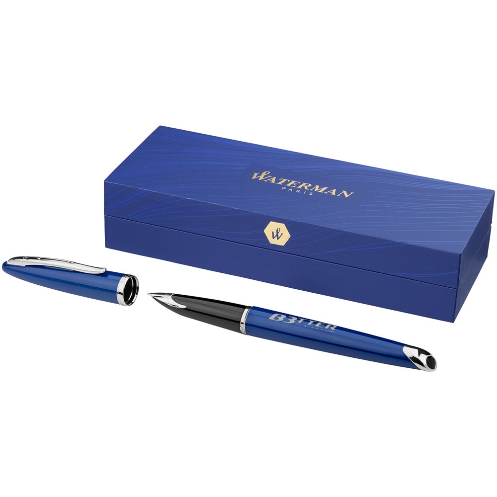 Blauw is de kleur die de inspiratie vormde voor een fascinerende nieuwe pennencollectie van Waterman. Ontworpen met oog voor detail, gemaakt met zorg voor kwaliteit. Elegante creaties die uitnodigen tot creativiteit. Kenmerken: Uitgevoerd in een combinatie van blauwe lak en glanzend grijs staal. Ultramoderne decoratie in geëtst ruitpatroon. Met 18 karaats gouden penpunt in uniek design. Geleverd met vulling in Waterman geschenkverpakking. Blauwschrijvend.