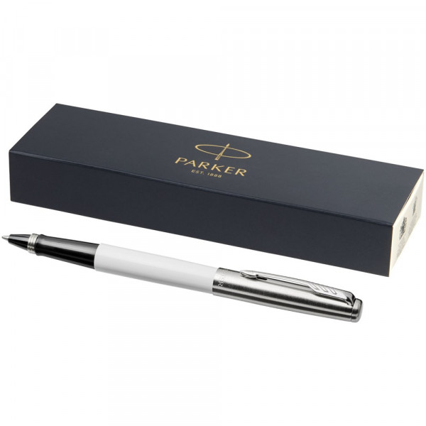 De Jotter rollerbalpen is een moderne interpretatie van de originele icoon. Met de iconische glanzende kunststof huls, gepolijste roestvrijstalen dop en pijlklem. Verpakt in een Parker geschenkverpakking.