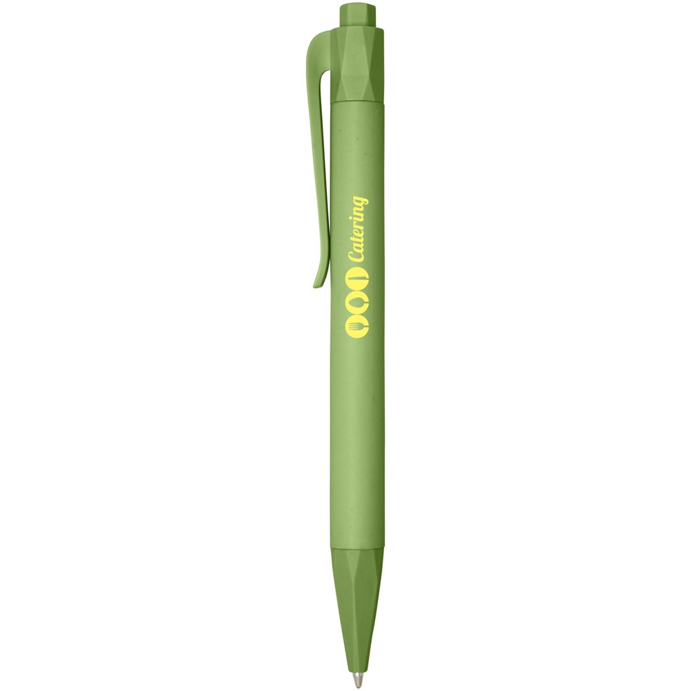 Hervulbare en duurzame balpen met klikmechanisme, gemaakt van 100% PLA (corn plastic) waardoor er minder plastic wordt gebruikt. Inclusief navulling met een schrijflengte van ongeveer 2000 meter. De pen wordt standaard geleverd met blauwe navulling die op verzoek kan worden vervangen door zwarte inkt. Verpakt in een kartonnen pennenhoes.