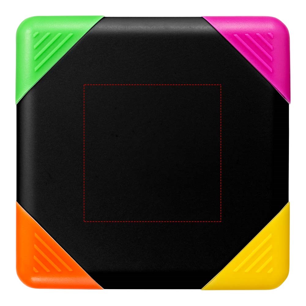 Vierkante markeerstift met schrijftip in geel, oranje, roze en groen.