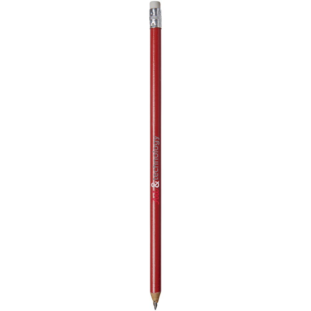 Houten potlood met een natuurlijke uitstraling and gekleurde gum. Ongeslepen.