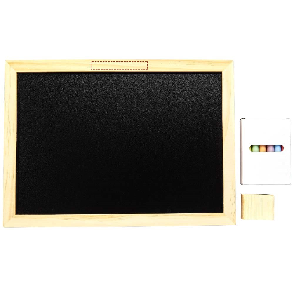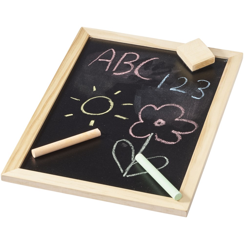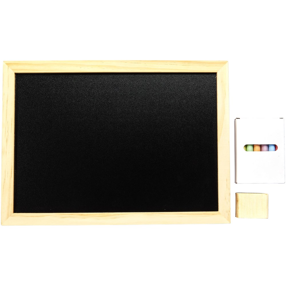 6 gekleurde krijtjes met bord en een wisser. Geleverd in een kartonnen geschenkverpakking.