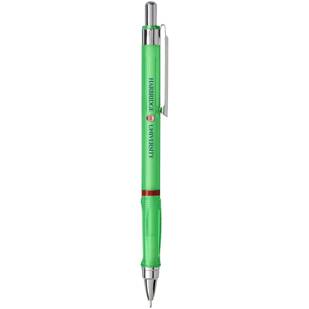 Vulpotlood met klikmechanisme voor dynamisch schrijven en schetsen. Voorzien van een metalen mechanisme met intrekbare stiftjes. Driehoekige greep voor ontspannen handligging. Intrekbare punt met stiftjes van 2B-hoogpolymeer. Stiftmaat: 0,5 mm.
