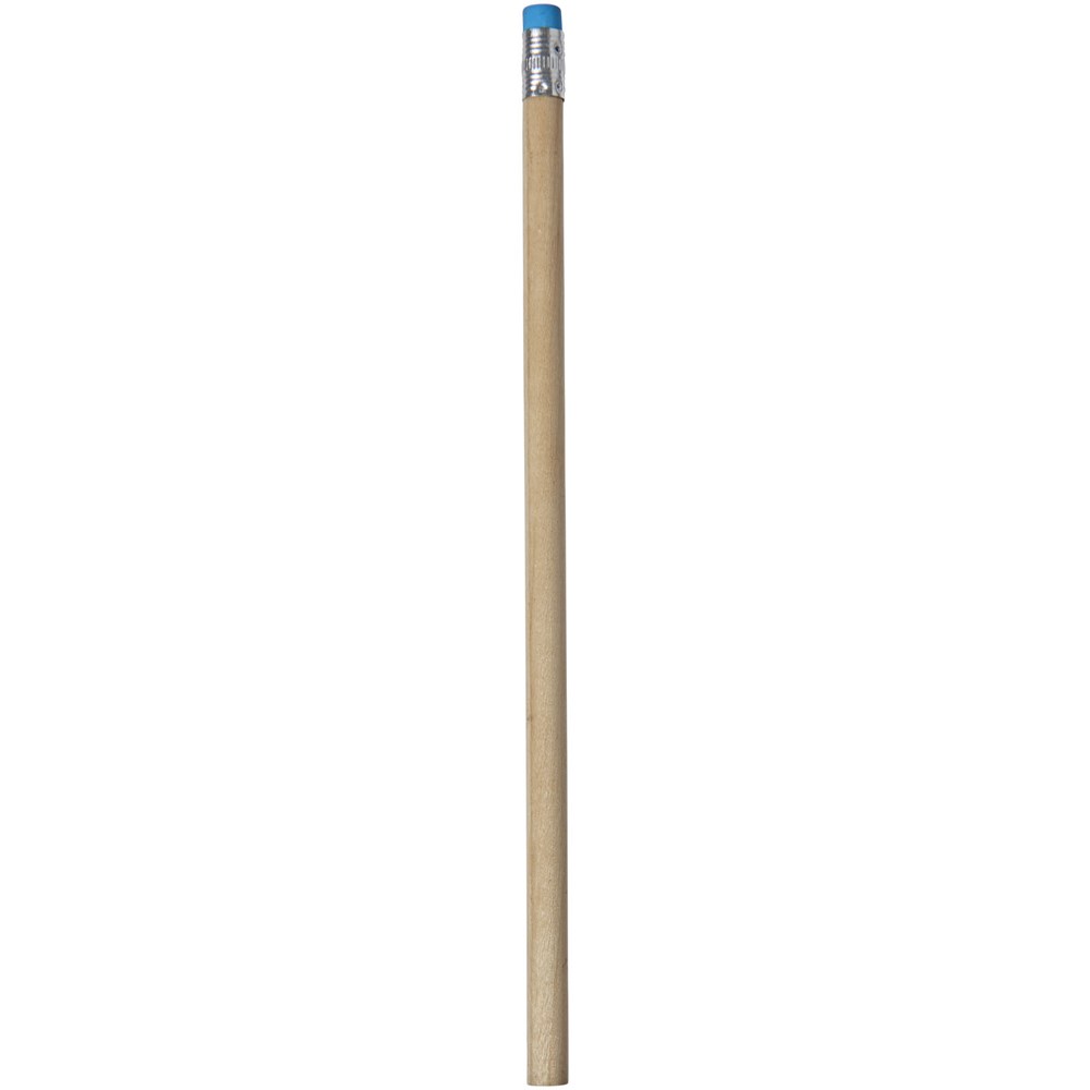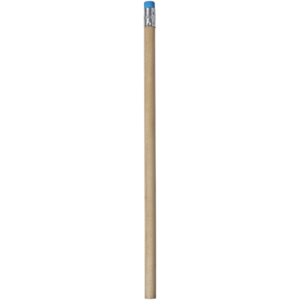 Houten potlood met een natuurlijke uitstraling and gekleurde gum. Ongeslepen.