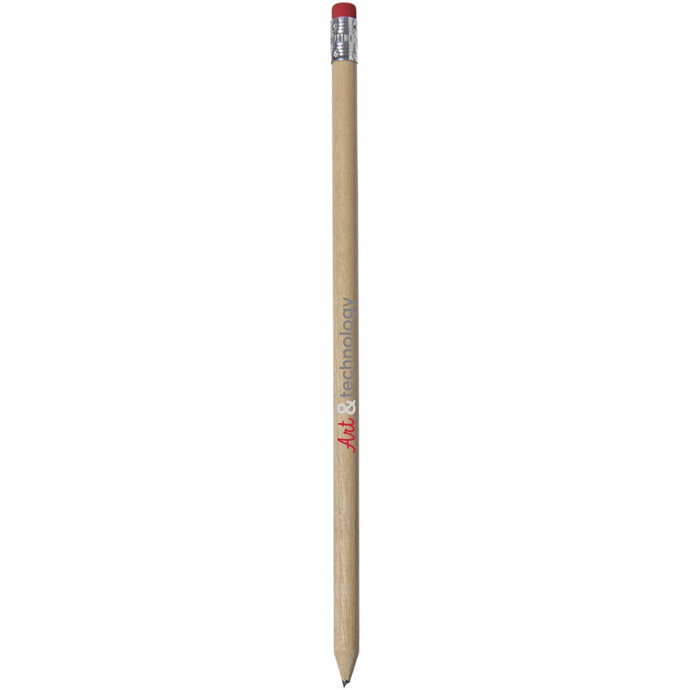 Houten potlood met een natuurlijke uitstraling and gekleurde gum. Ongeslepen.