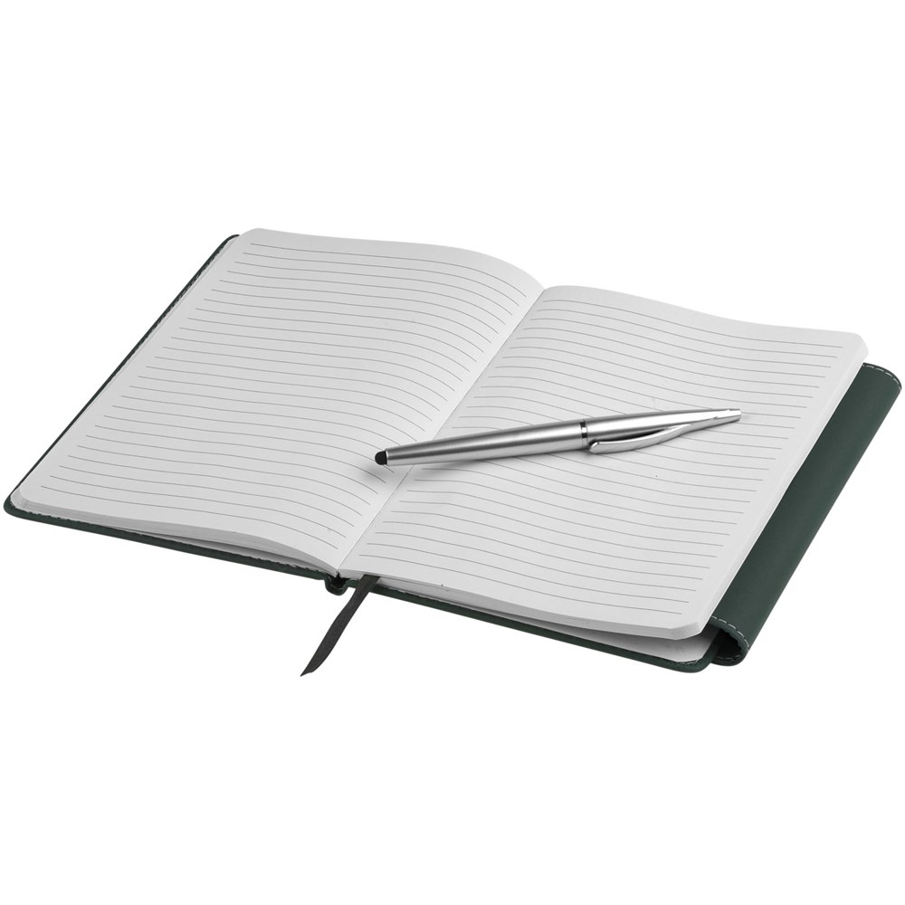 Ingebonden A5 formaat notitieboek met magneetsluiting. Met kunststof stylus balpen en 80 pagina's van 70 gram gelinieerd papier.