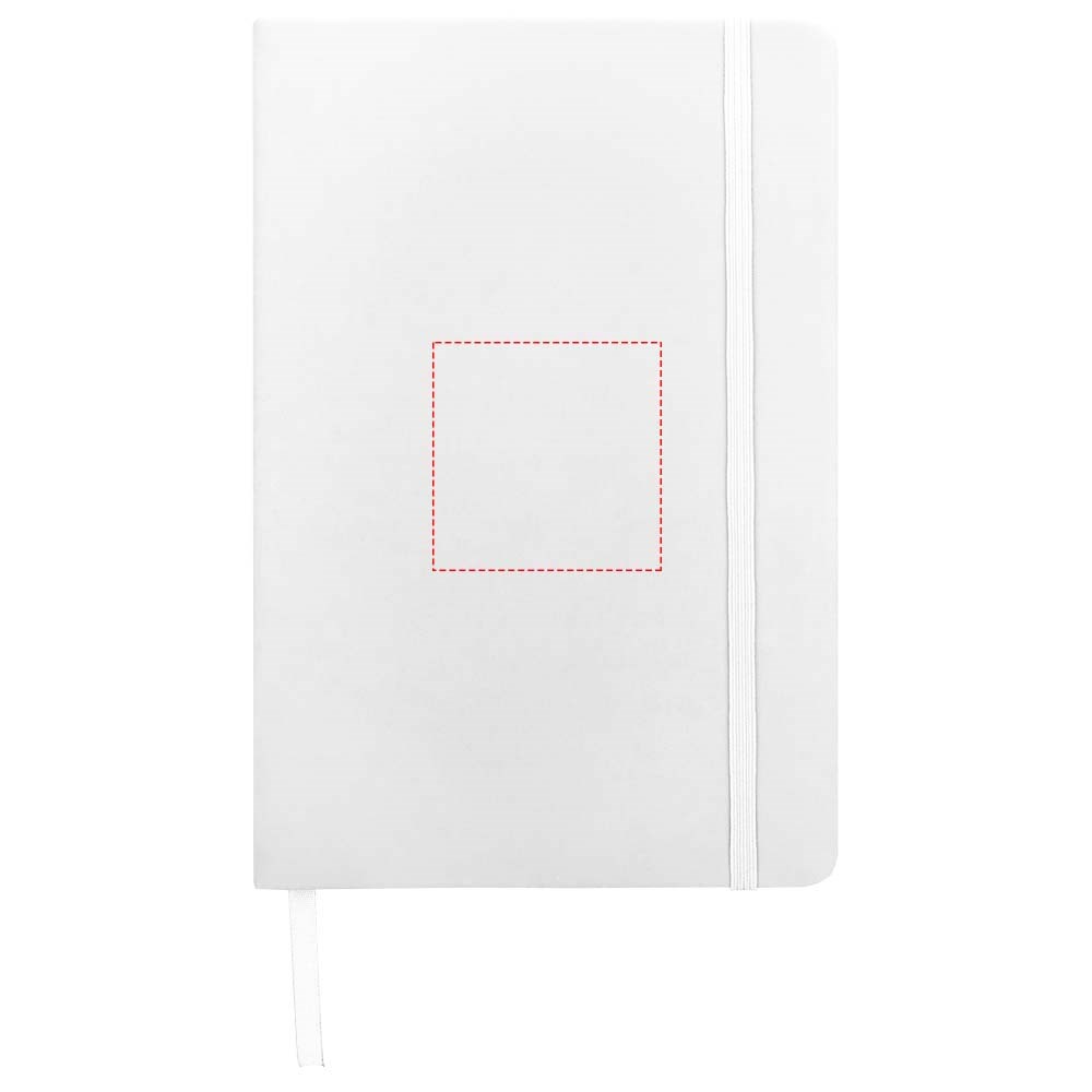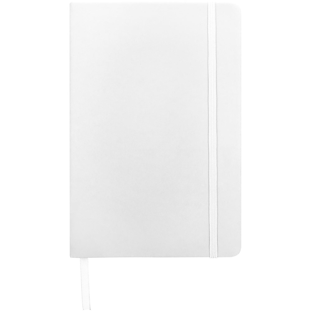 A5 formaat notitieboek met bijpassende gekleurde elastieksluiting en paginalint. 96 pagina's van 60g/m2 gelinieerd papier. Pagina's niet helder wit.