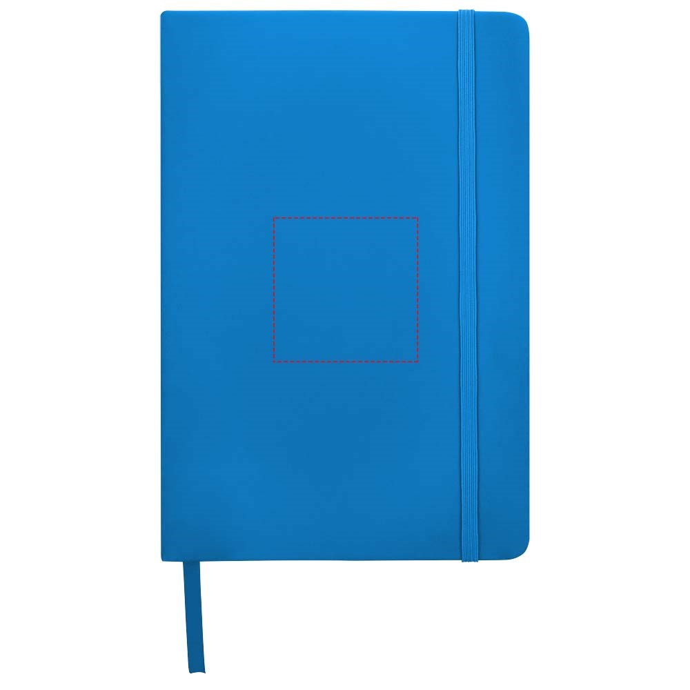 A5 formaat notitieboek met bijpassende gekleurde elastieksluiting en paginalint. 96 pagina's van 60g/m2 gelinieerd papier. Pagina's niet helder wit.