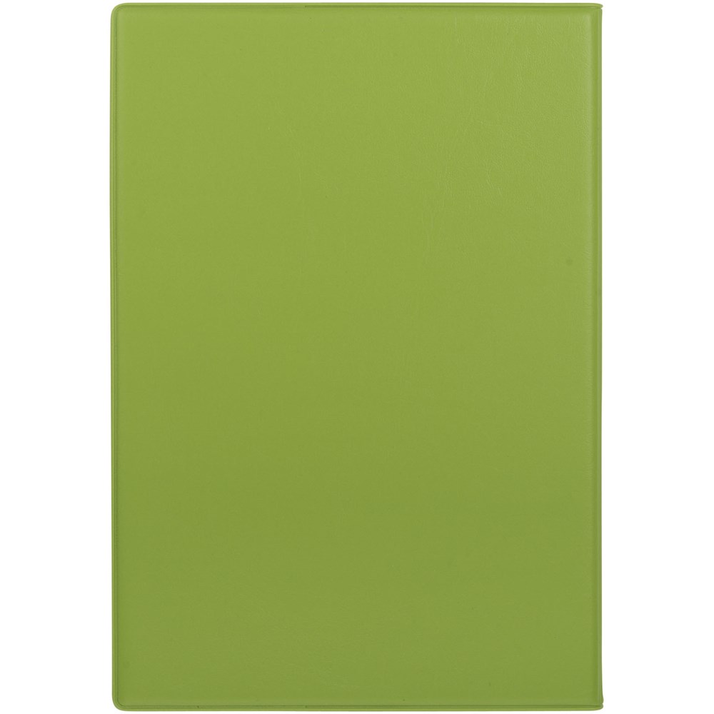 A5 formaat notitieboek met visitekaart ID venster op de voorkant. 120 pagina's van 70 gam gelinieerd papier met drie gekleurde scheidingspagina's.