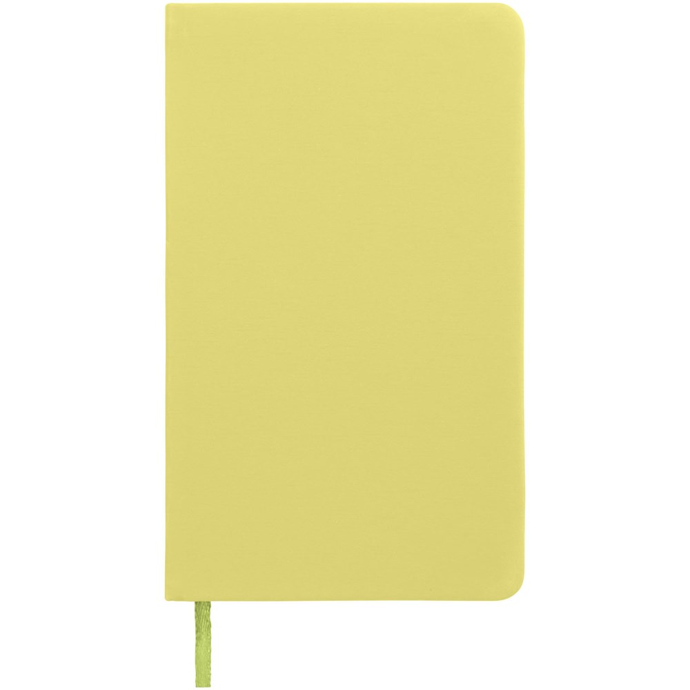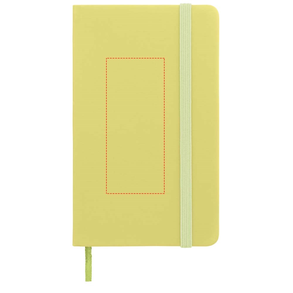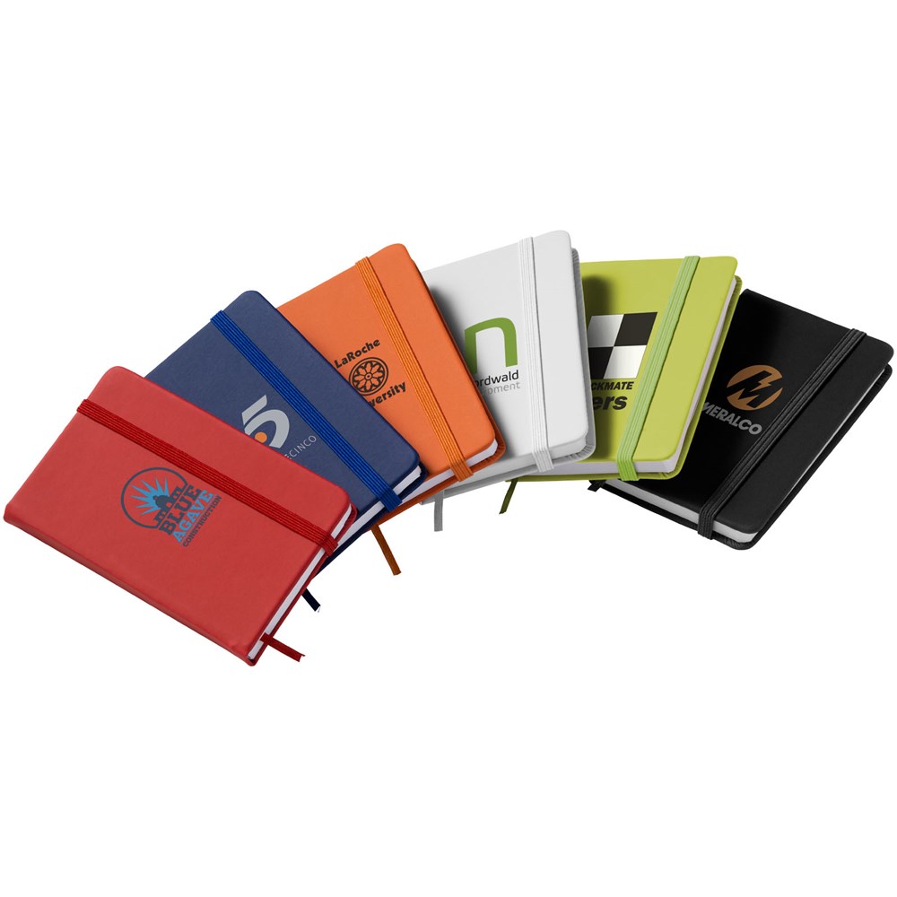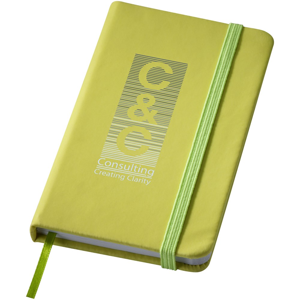 A7 formaat notitieboek met bijpassende gekleurde elastieksluiting en paginalint. 60 pagina's van 60 gram gelinieerd papier.