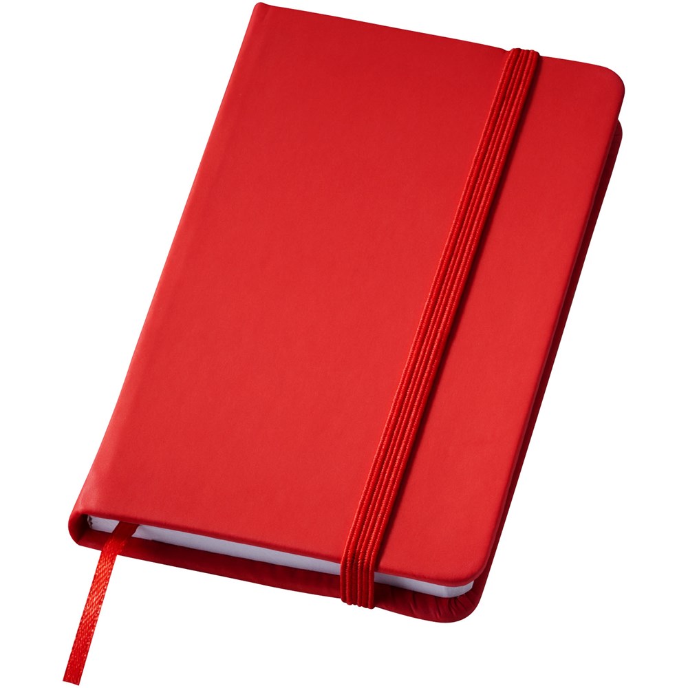 A7 formaat notitieboek met bijpassende gekleurde elastieksluiting en paginalint. 60 pagina's van 60 gram gelinieerd papier.