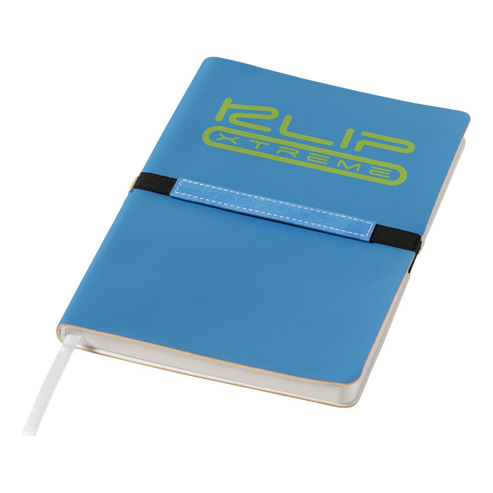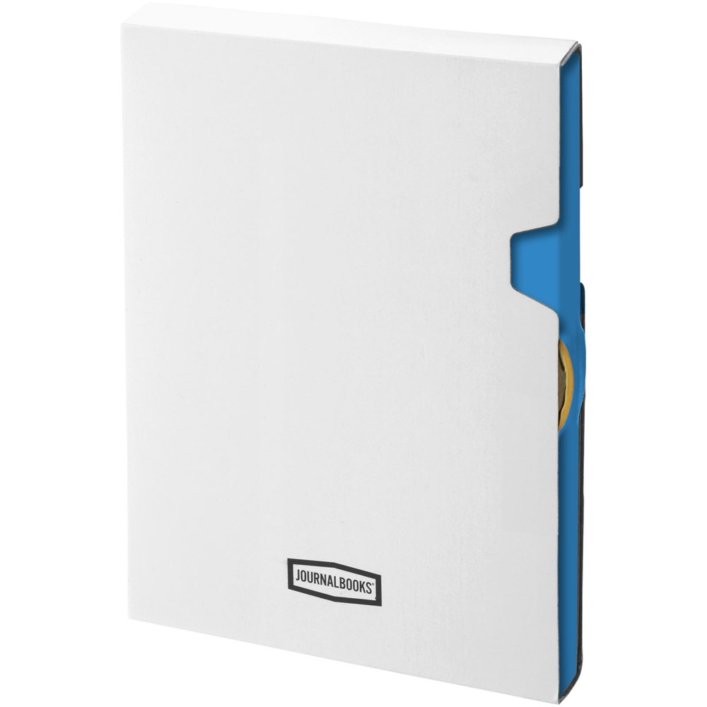 Mooi design A5 notitieboek met geheel eigen decoratiemogelijkheid op een speciaal gedeelte van de stevige, aan de rug bevestigde elastiekband. 96 pagina's van 80 gram gelinieerd papier. Geleverd in een Journalbooks geschenketui.