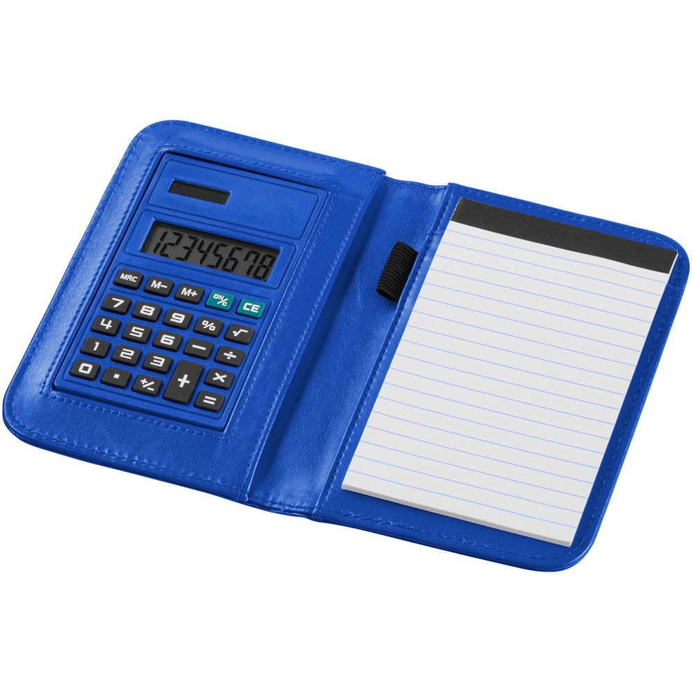 Notitieboek met 8 cijfers rekenmachine , 20 pagina's van 70 gram gelinieerd papier en penlus. Inclusief batterij.