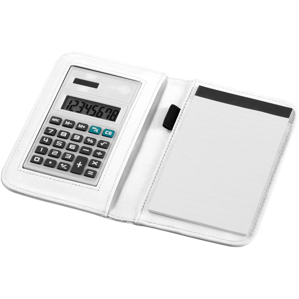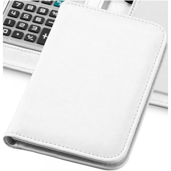 Notitieboek met 8 cijfers rekenmachine , 20 pagina's van 70 gram gelinieerd papier en penlus. Inclusief batterij.