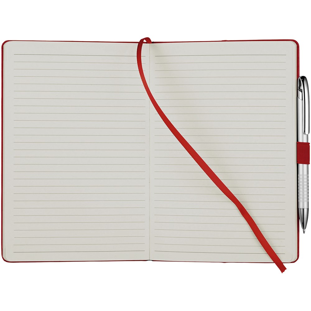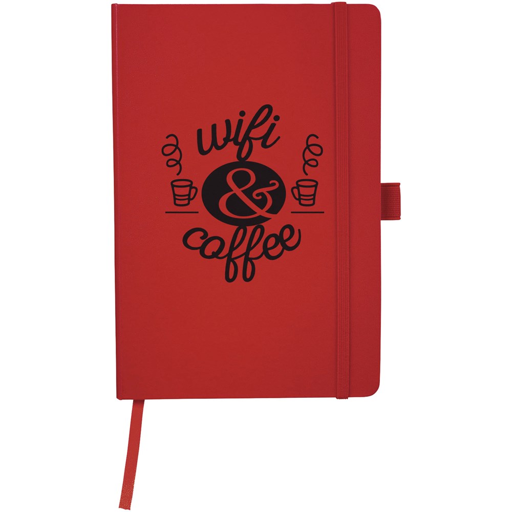 Notebook met flexibele omslag. Inclusief elastieksluiting, paginalint en 80 pagina's van 80 gram gelinieerd papier.