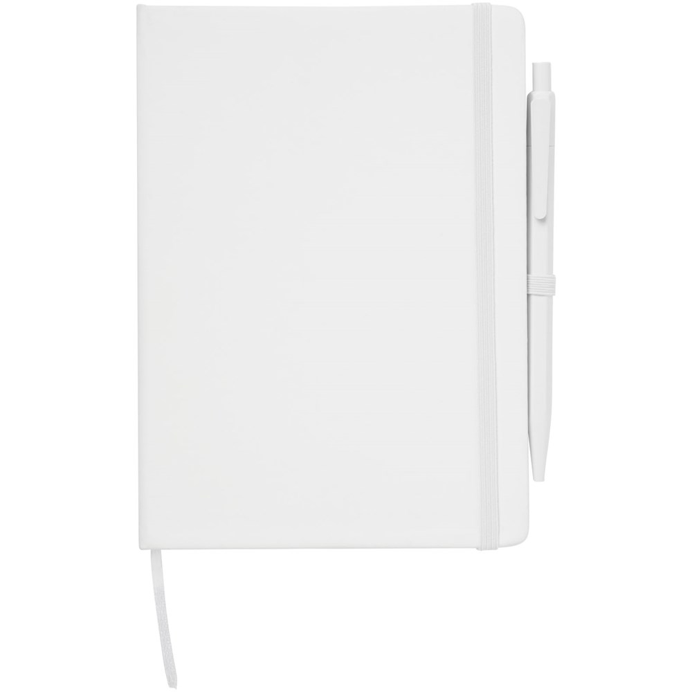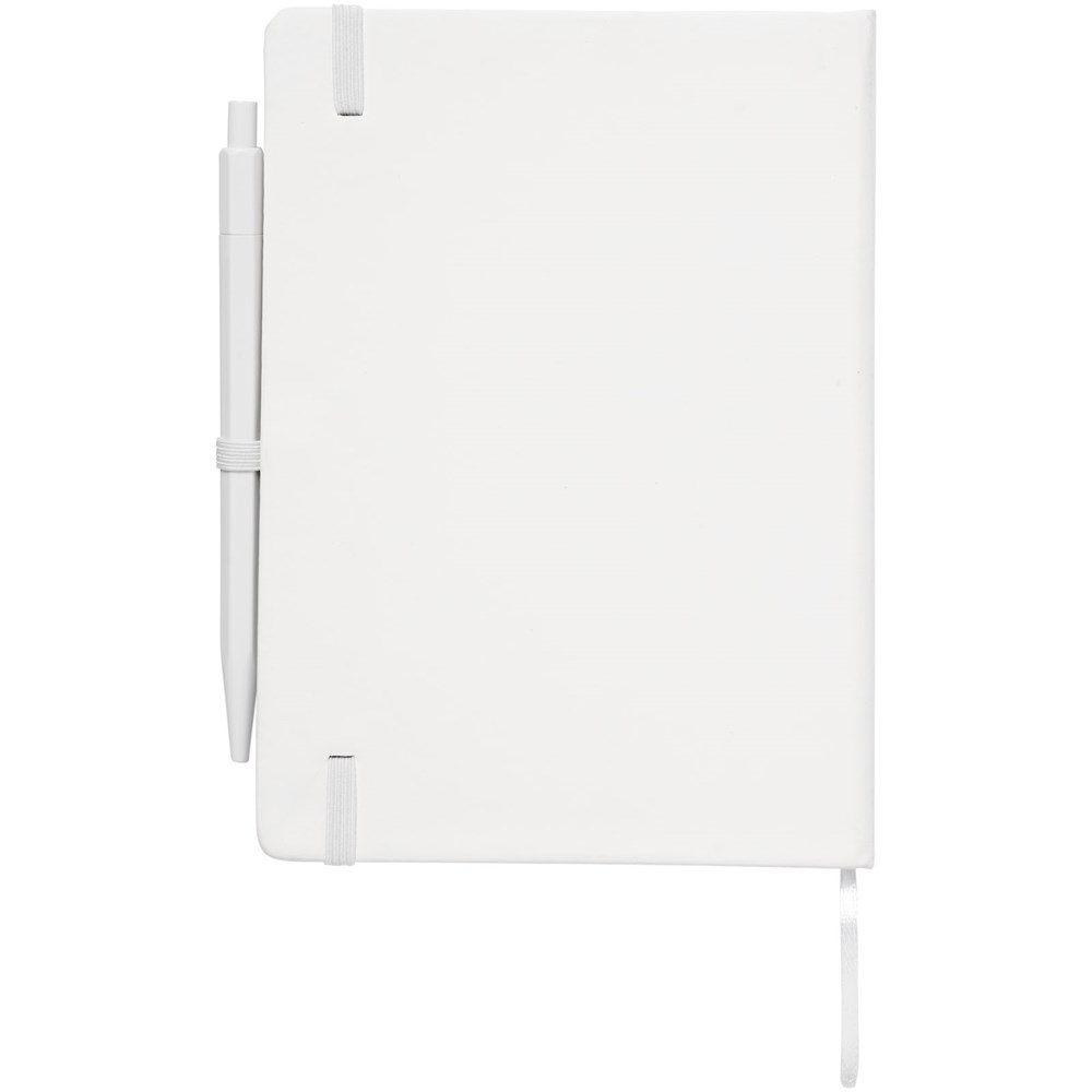 Hardcover notitieboek inclusief pen met bijpassende elastische sluiting in kleur, lint als bladwijzer en pennenlus. Voorzien van 50 vellen wit gelinieerd papier. Bijpassende pen in kleur met zwarte navulbare inktvulling.