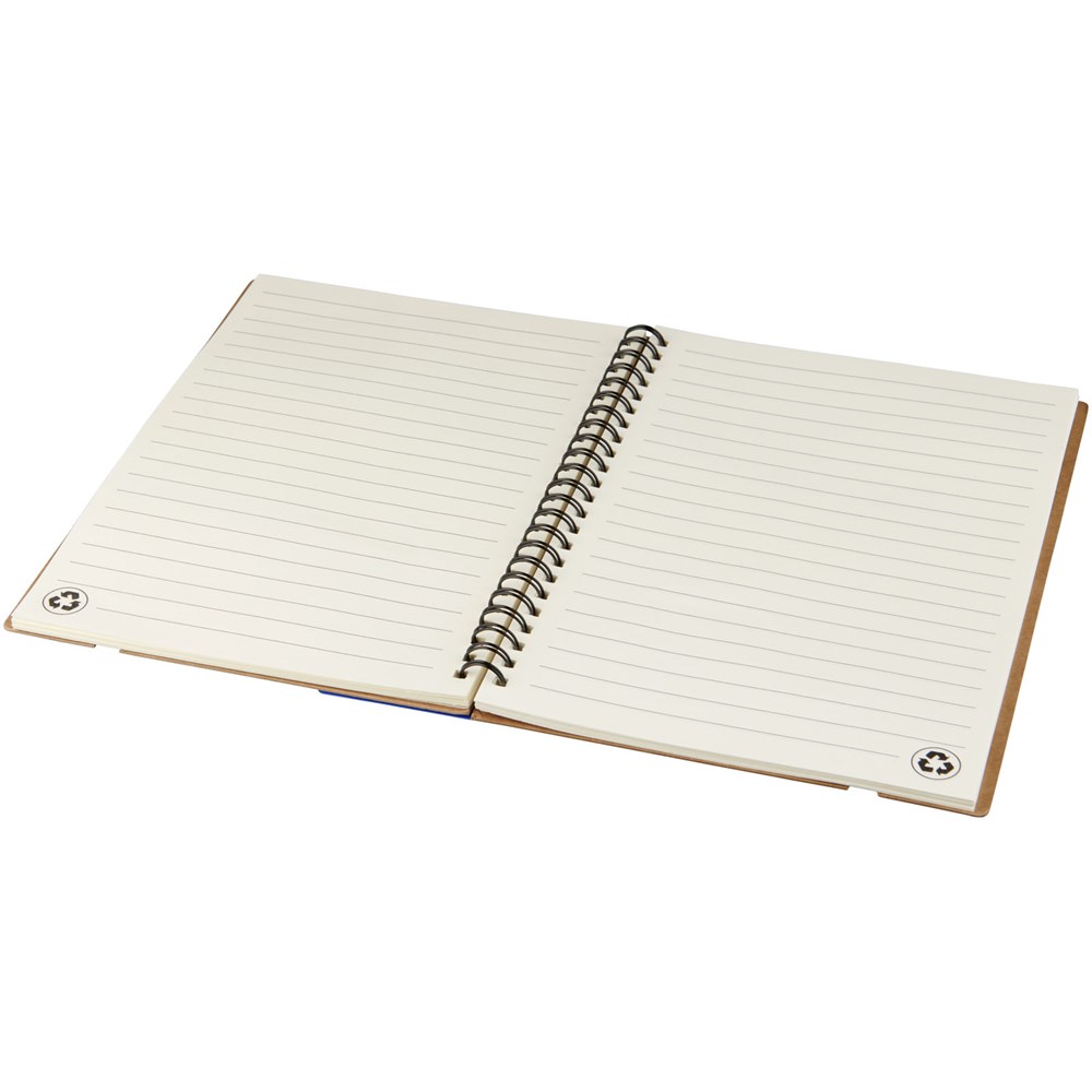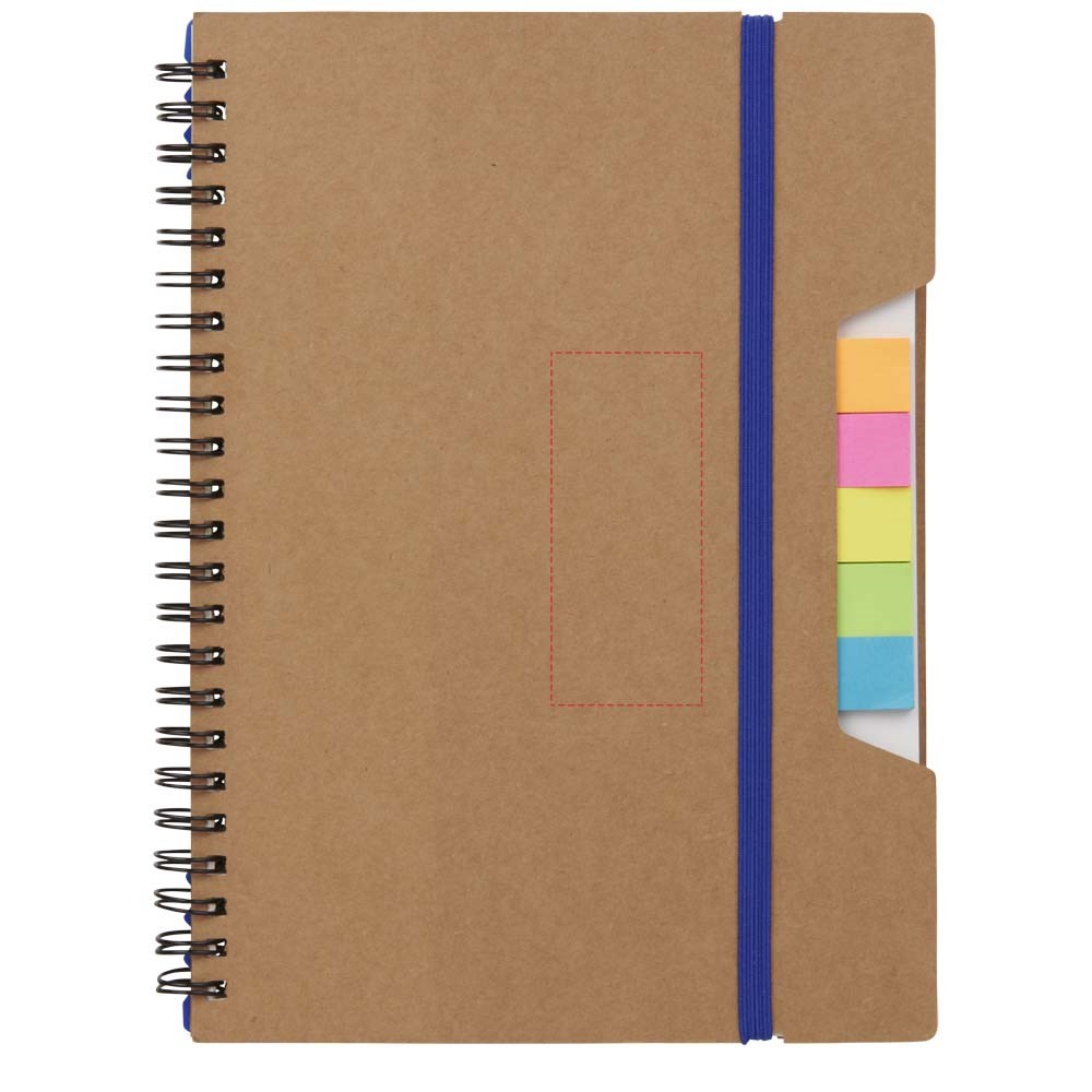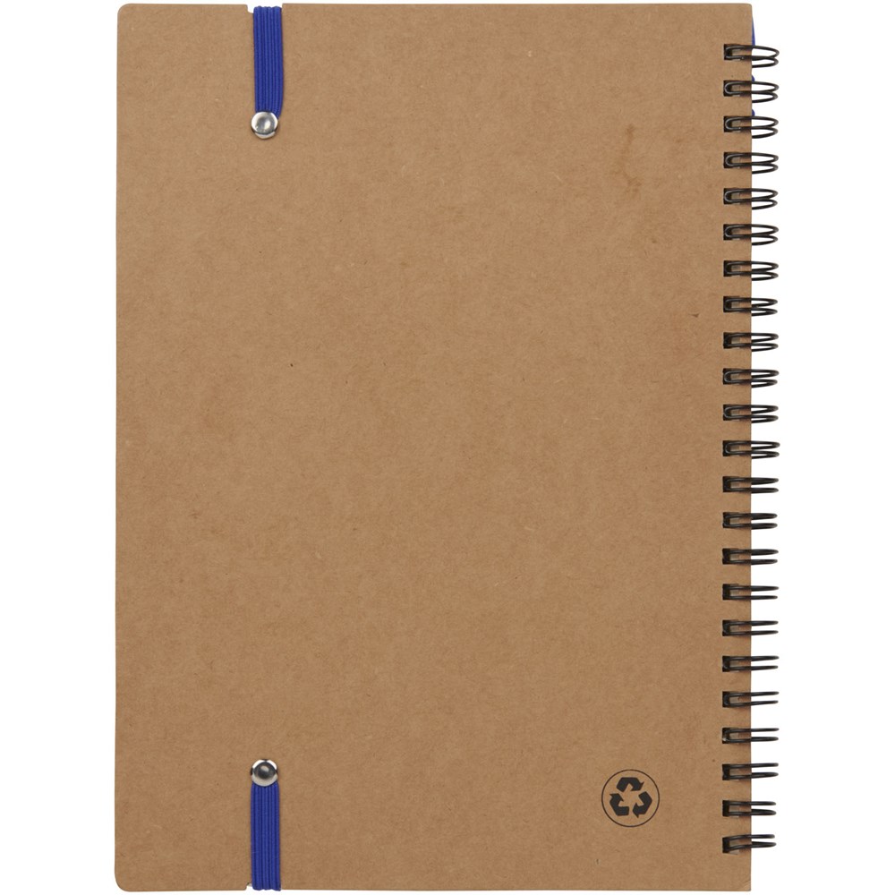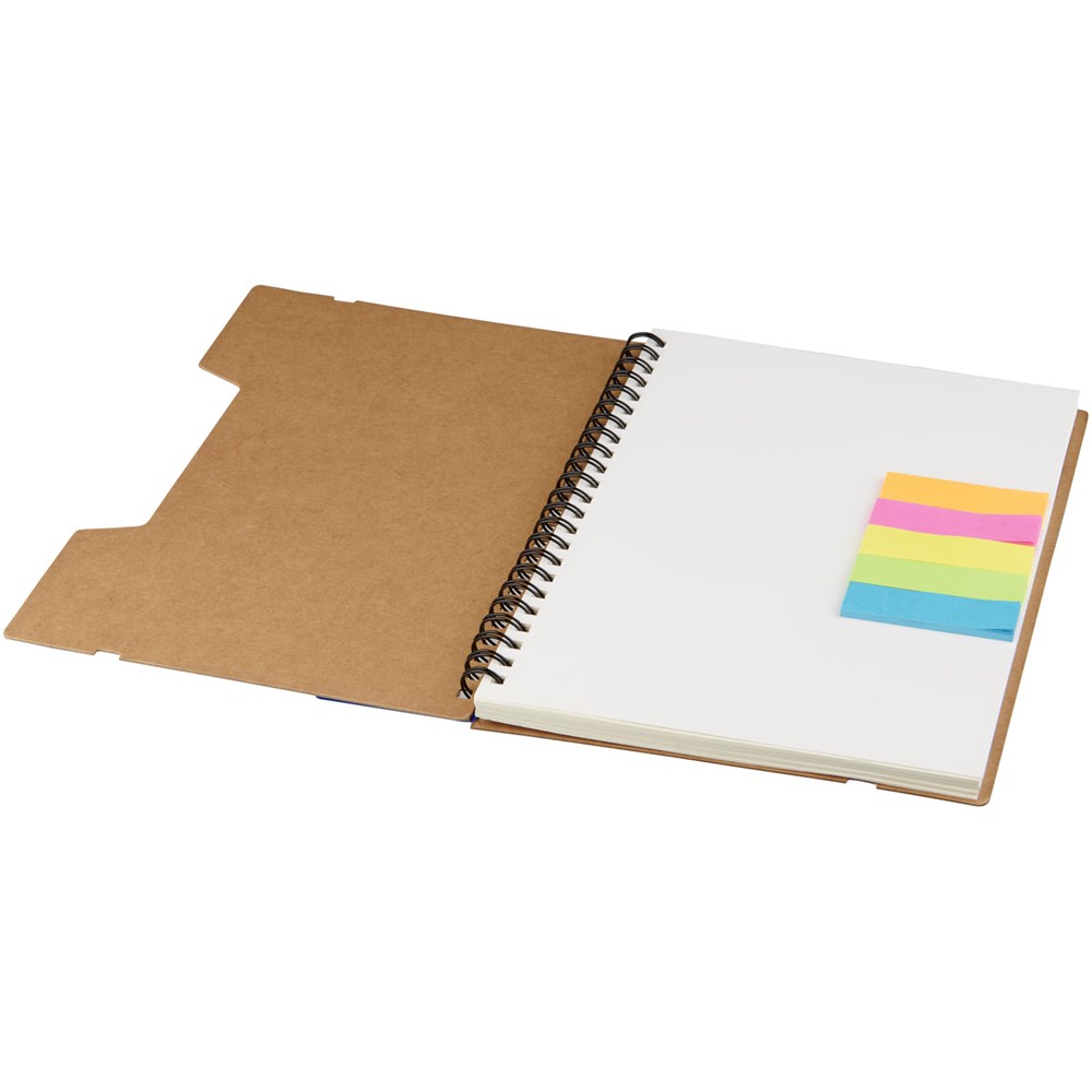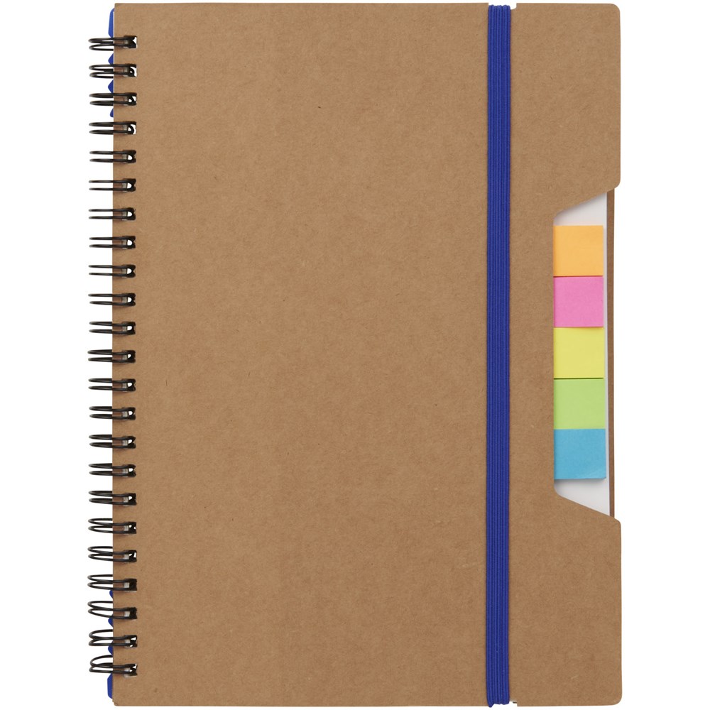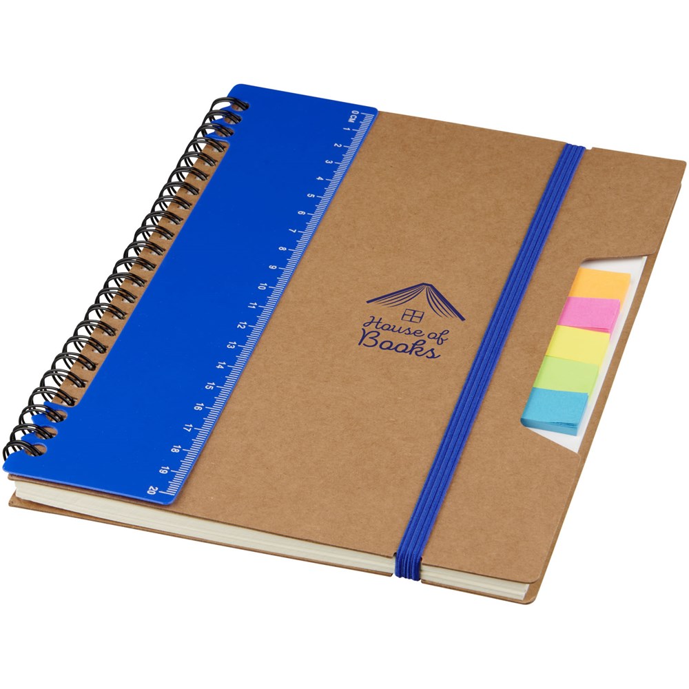 Een A5-formaat notitieboek met een elastische sluiting in bijpassende kleur en een liniaal met centimeter aan de voorzijde en inches aan de achterzijde. Wordt geleverd met 100 sticky notes, 25 per kleur. Bevat 70 bladen van 70 g/m2 lijntjespapier.