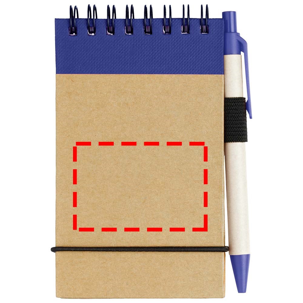 A7 formaat notitieboekje van gerecycled materiaal met 40 pagina's gelinieerd papier en bijpassende pen. Pen apart verpakt.