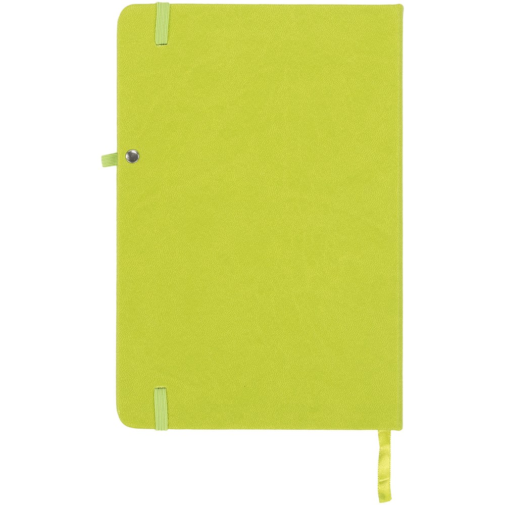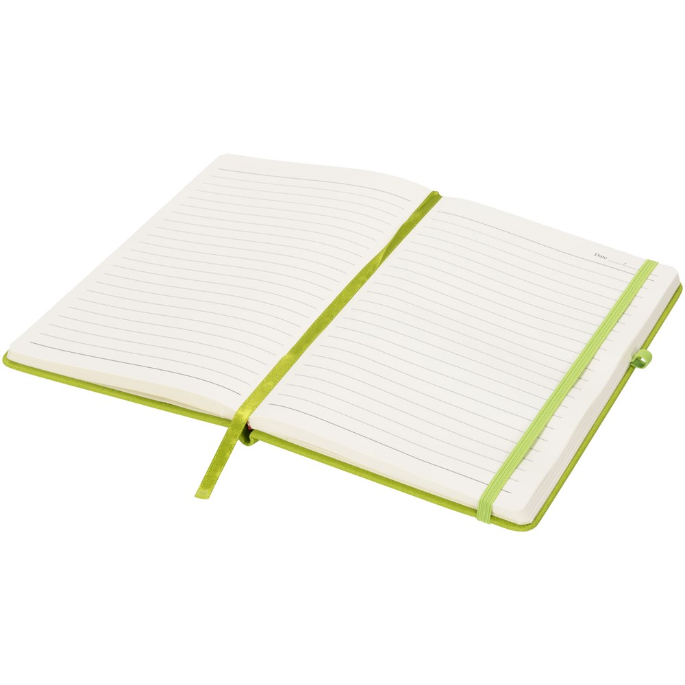 Het Rivista-notitieboek heeft een stijlvol modern design met een hoogwaardige, tastbare omslag, ideaal voor het plaatsen van je bedrijfslogo en -gegevens. Verkrijgbaar in een variatie aan tijdloze kleuren. Inclusief een elastische sluiting, penlus, bladwijzer en opbergvakje aan de binnenkant van de achterste omslag. Bevat 128 bladen (70g/m2) crèmekleurig gelinieerd papier.