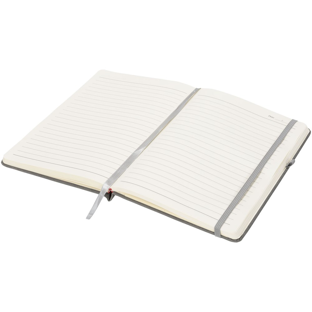 Het Rivista-notitieboek heeft een stijlvol modern design met een hoogwaardige, tastbare omslag, ideaal voor het plaatsen van je bedrijfslogo en -gegevens. Verkrijgbaar in een variatie aan tijdloze kleuren. Inclusief een elastische sluiting, penlus, bladwijzer en opbergvakje aan de binnenkant van de achterste omslag. Bevat 128 bladen (70g/m2) crèmekleurig gelinieerd papier.