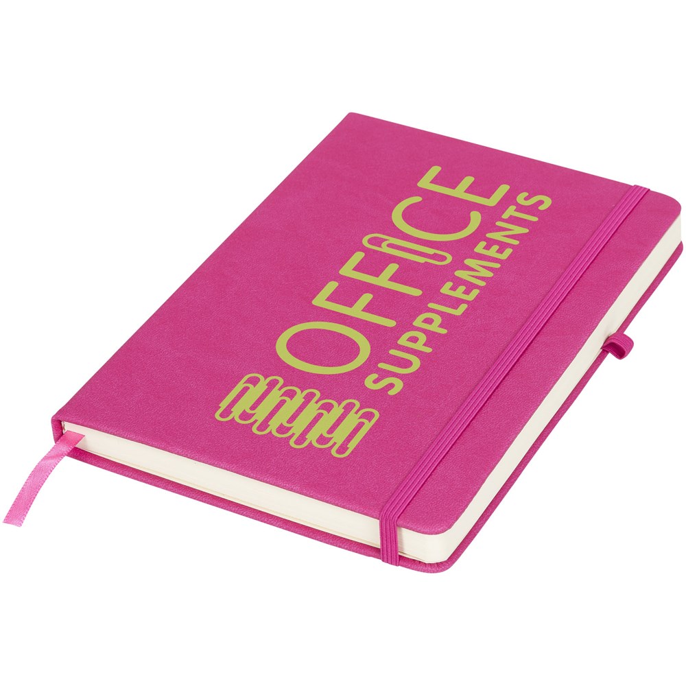 Het Rivista-notitieboek heeft een stijlvol modern design met een hoogwaardige, tastbare omslag, ideaal voor het plaatsen van je bedrijfslogo en -gegevens. Verkrijgbaar in een variatie aan tijdloze kleuren. Inclusief een elastische sluiting, penlus, bladwijzer en opbergvakje aan de binnenkant van de achterste omslag. Bevat 128 bladen (70g/m2) crèmekleurig gelinieerd papier.