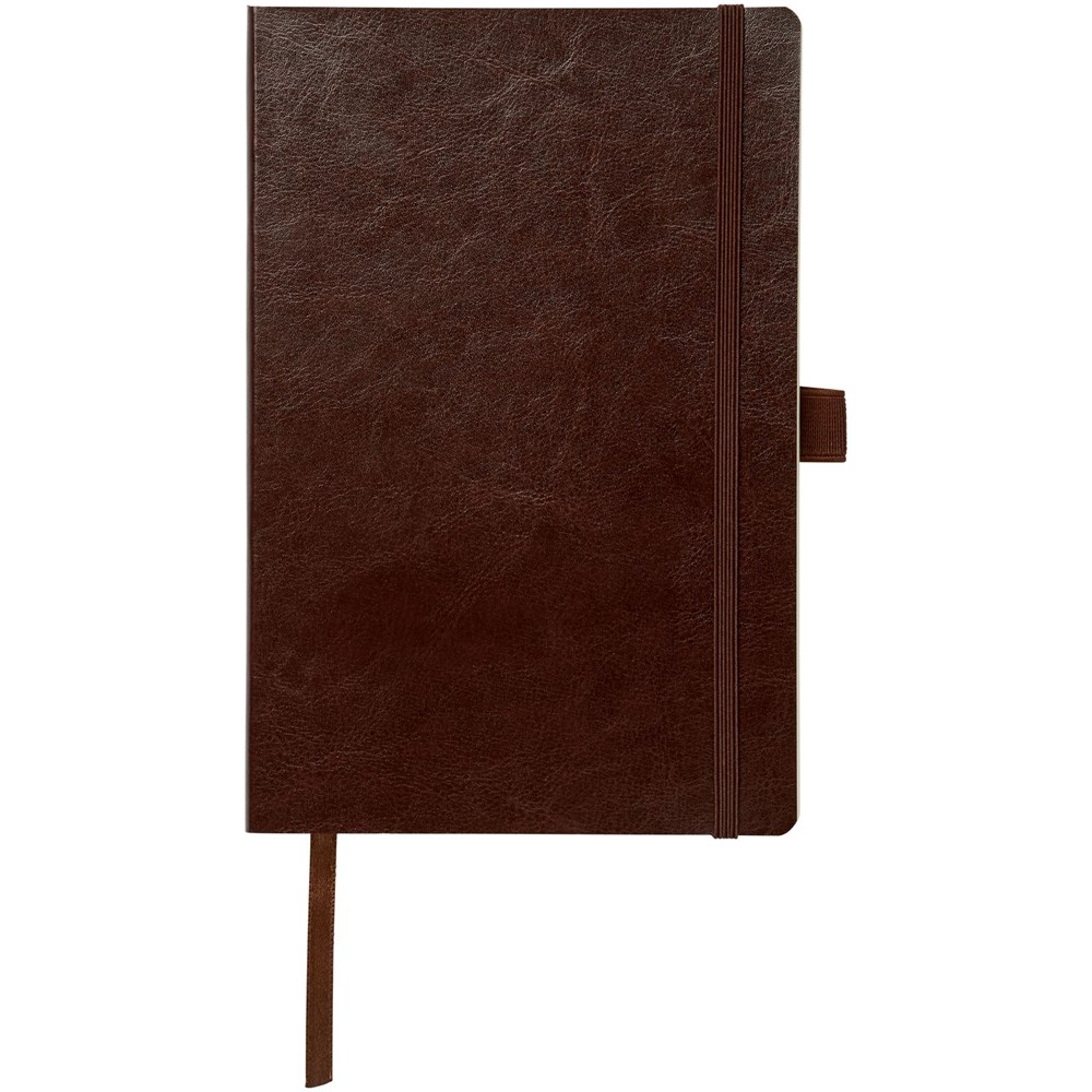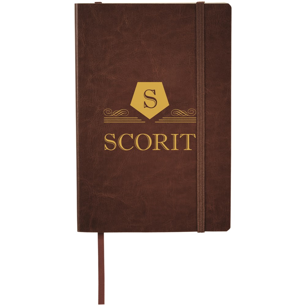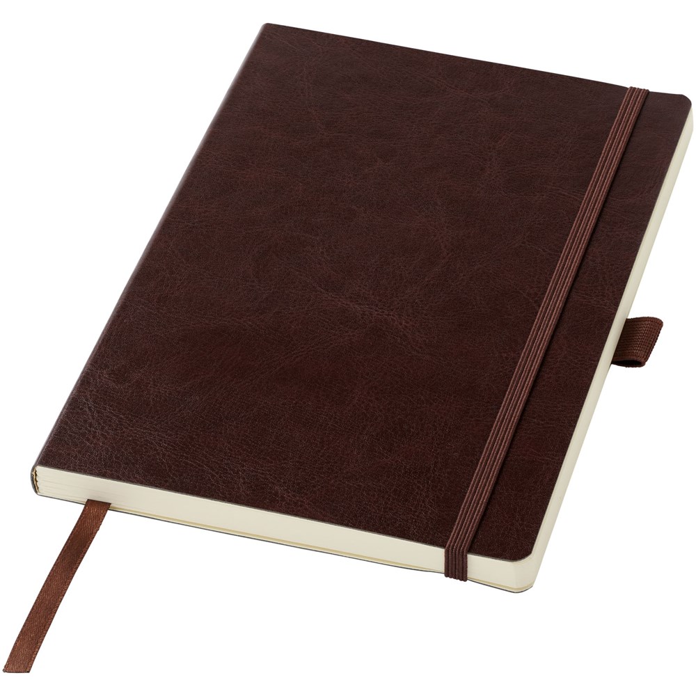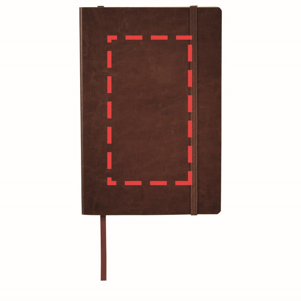 PU leren notitieboek in A5 formaat met zachte kaft en elastische sluiting en bladwijzer in bijpassende kleur. 80 g/m2, 80 vellen crèmekleurig lijntjespapier. Verpakt in een hoes.